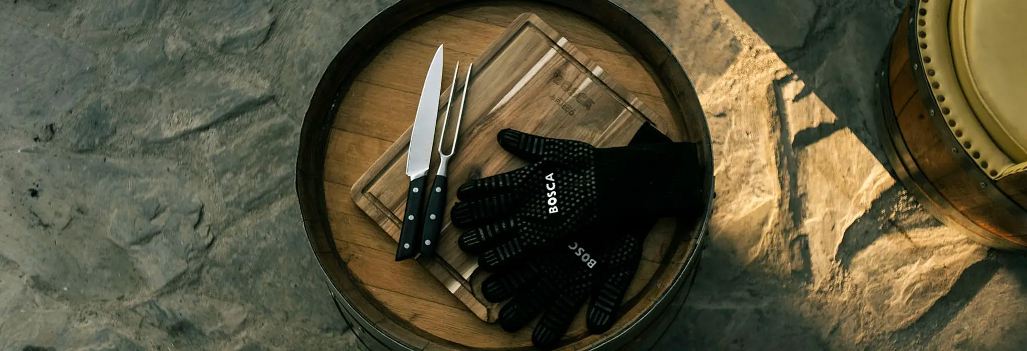 Bosca Cutting Borad, Knife & Fork BBQ Set